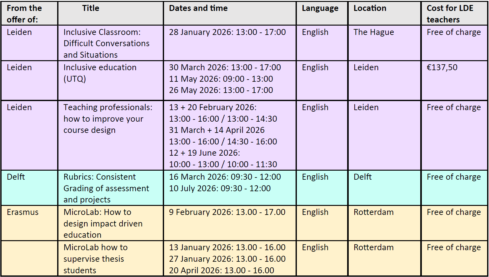 Lecturers from Leiden University, TU Delft and Erasmus University Rotterdam can make use of each other's course offerings. This is particularly interesting for courses that are complementary to those offered by your own university. It offers the opportunity to broaden your perspective and learn from lecturers from another university. An additional advantage is that lecturers from the other LDE universities are charged the same rate as their own lecturers. In the case of the selected offer from Erasmus University Rotterdam and TU Delft, participation is even free of charge.