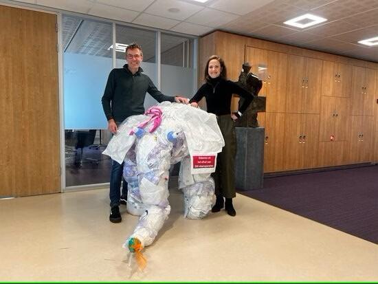 The “Polyphant” by artist Rebecca Banens is made from the waste from 200 cataract operations. It is mostly clean packaging, made of plastics like polypropylene and polyethylene. They go into the incinerator, when they could be recycled just fine.