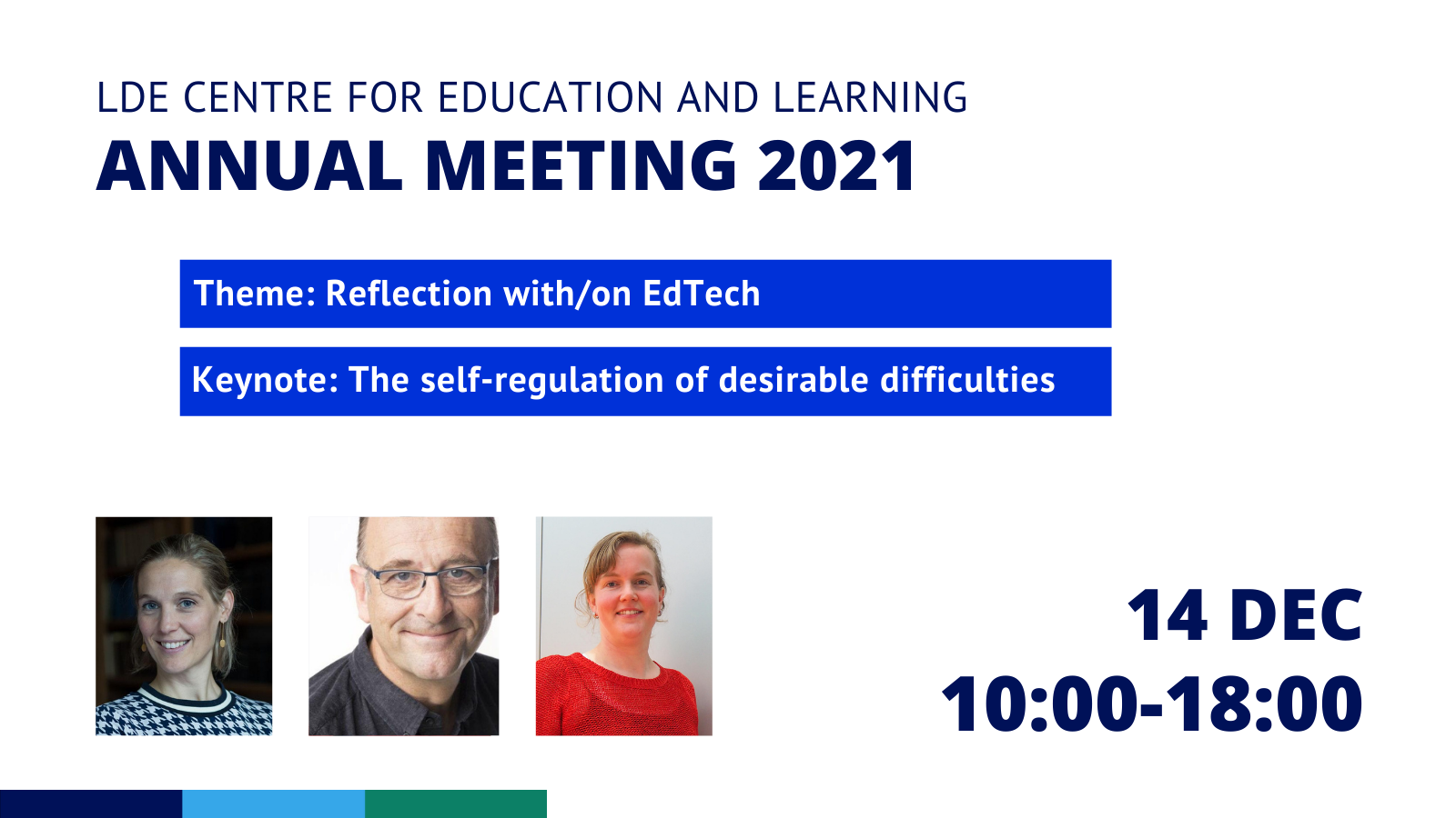 The Leiden-Delft-Erasmus Centre for Education and Learning Annual Meeting is a yearly event where we showcase our achievements and plans for the year to come. Each year we pick a different theme that we explore together with keynote speakers, workshops and panels. This year's theme will be ‘Reflection with/on EdTech’.