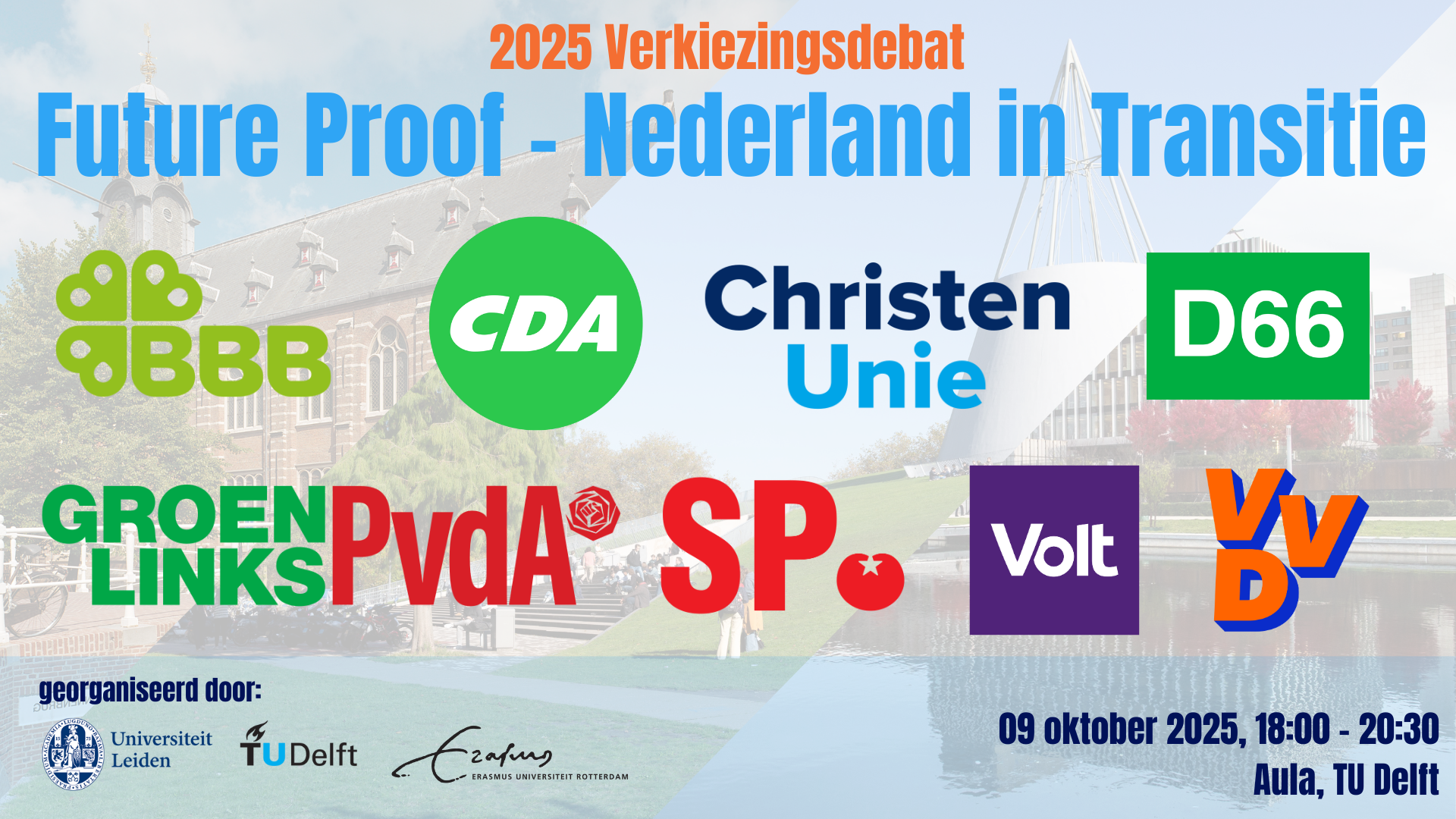 In aanloop naar de verkiezingen organiseren Universiteit Leiden, TU Delft en Erasmus Universiteit Rotterdam op 9 oktober een verkiezingsdebat.