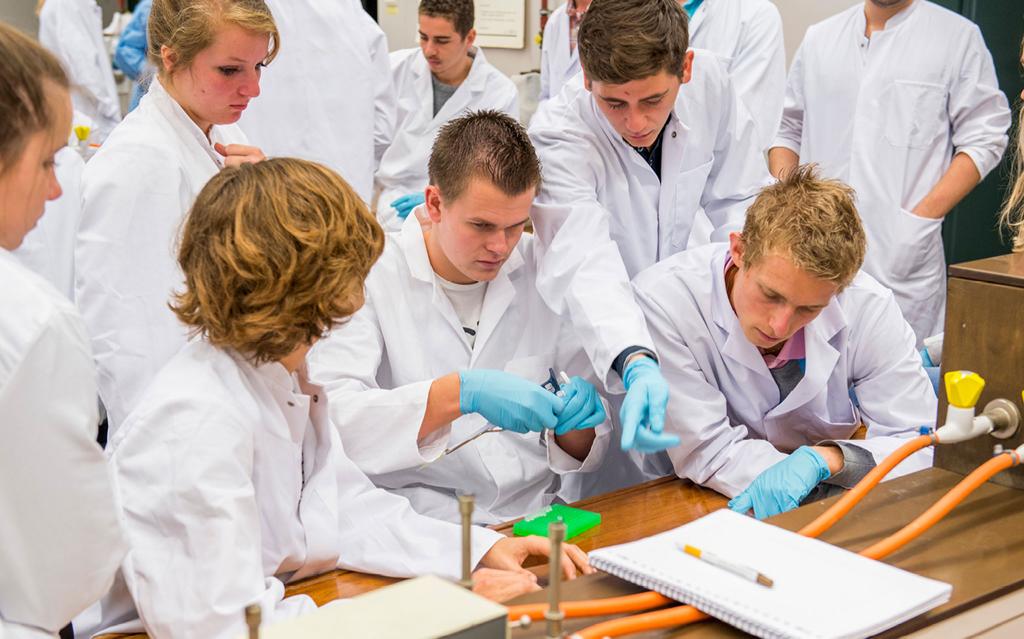 In het bachelor-curriculum van de opleiding zie je steeds een integratie van het medisch en technologisch onderwijs. Het menselijk lichaam wordt per orgaansysteem behandeld, zoals het spierskeletsysteem, het spijsverteringssysteem en het cardiovasculaire systeem. Daarbij wordt steeds de (patho)fysiologische kennis en anatomie gecombineerd met de meest voor de hand liggende technologische componenten zoals biomechanica, thermodynamica en medische beeldverwerking. ‘Het is heel leuk om kennis te ontwikkelen over het menselijk lichaam, bijvoorbeeld over de anatomie. Maar daarnaast is het interessant om uit te rekenen hoeveel kracht een bepaalde spier vervolgens nodig heeft om iets op te tillen en waar dan de meeste belasting komt’, zegt Max Ligtenberg, derdejaars student Klinische Technologie.